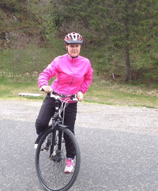 - Dette er 2. året på rad jeg er med i Sykle til jobben. Vi er 5 damer på laget som konkurrerer med resten av Helse Nord-Trøndelag. Det er raskere å sykle til jobben enn å kjøre bil for meg som bor 2,5 km fra jobben. Når jeg sykler hjem fra jobb tar jeg en runde ekstra for å få en lengre tur. Jeg holder meg for øvrig i form ved turer i fjellet og i treningsstudio ved dårlig vær og om vinteren.
